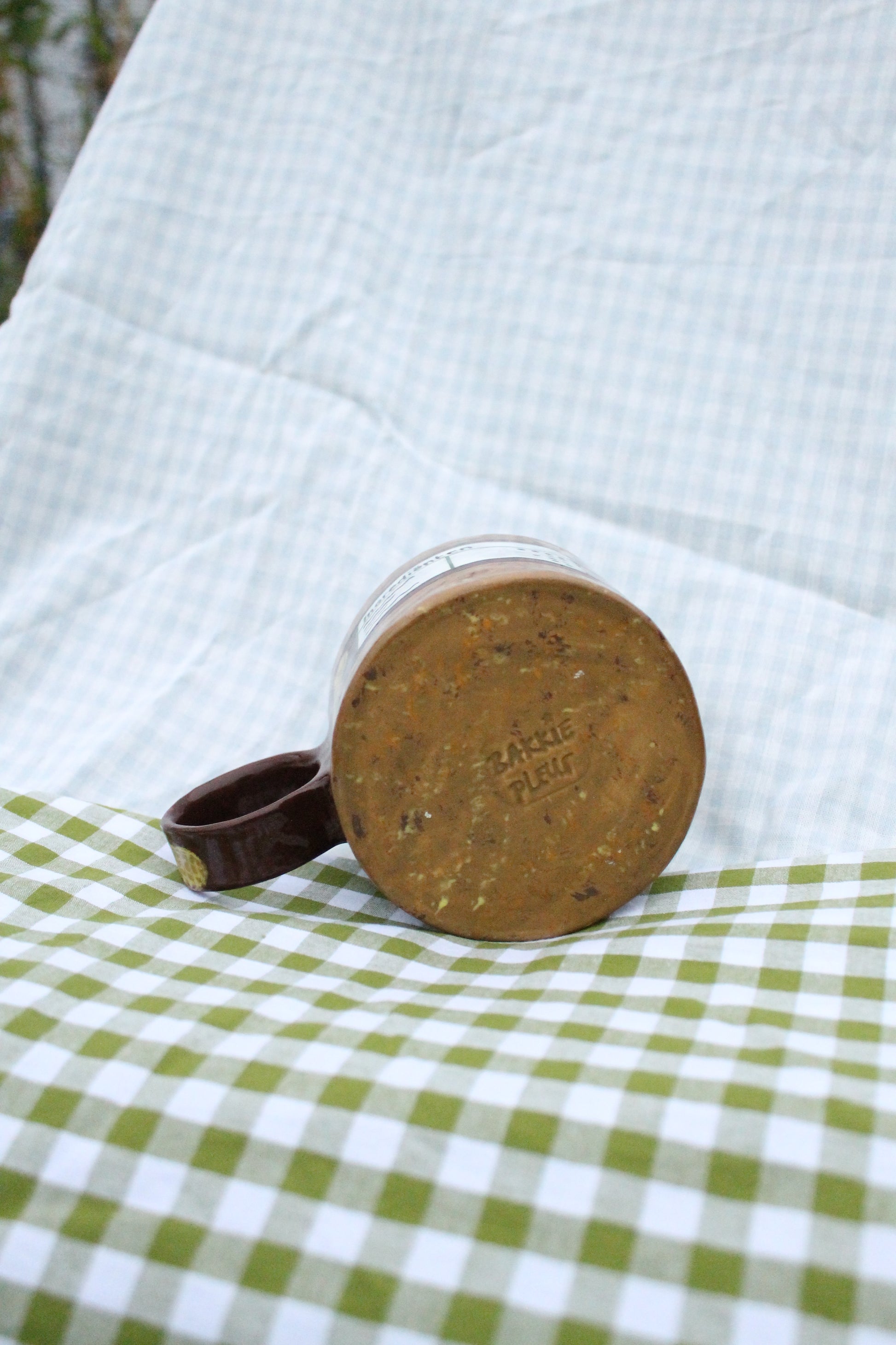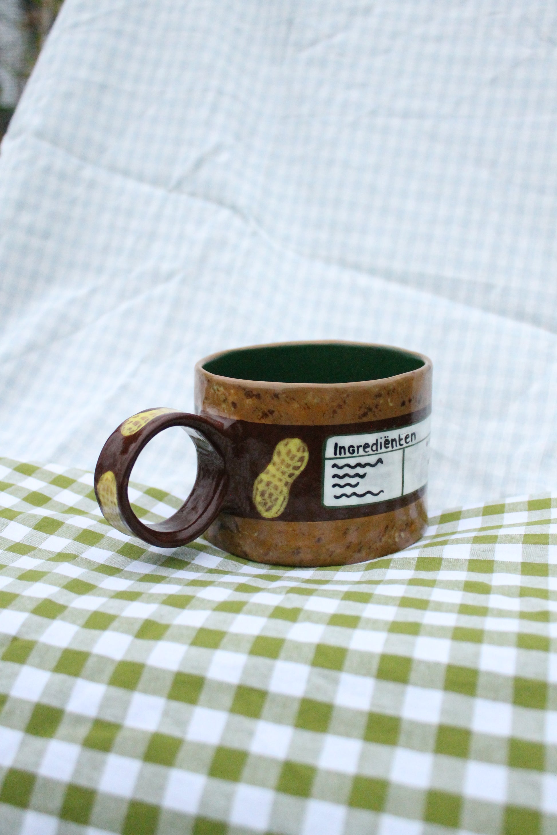 This handmade mug is a playful tribute to this pantry favourite. Completely hand-built and hand-painted by me in my cozy atelier in Utrecht, this cup is made to invite you to slow down. Wrap your hands around it, take a deep breath, and enjoy a quiet moment with your favourite hot drink. I hope it brings you as much joy as I had creating it.
